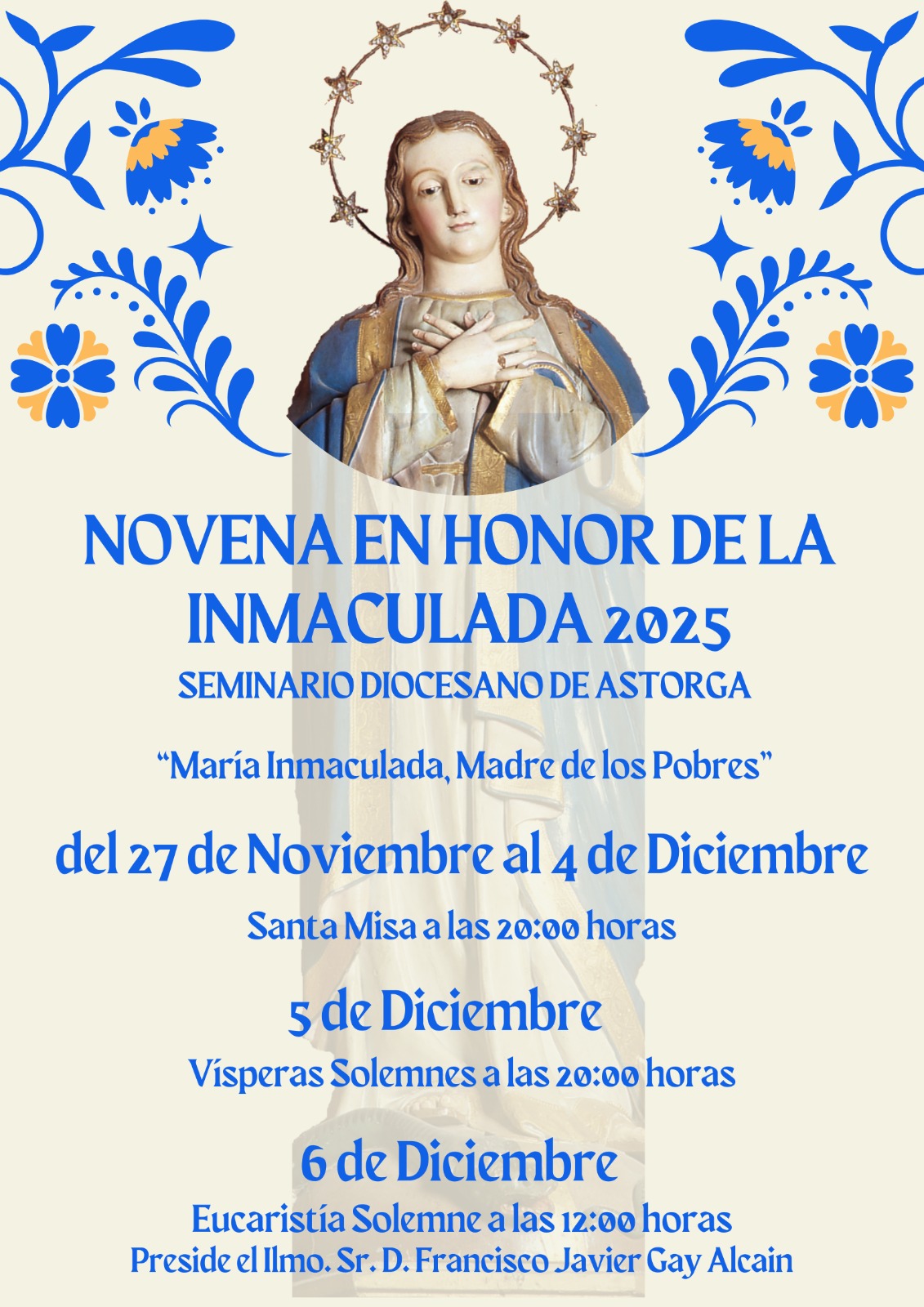 El 24 de Abril de 1788 se acordó poner en la portada del Seminario la estatua de María Santísima de la Concepción como titular de él como había ordenado Carlos III a nuestro Obispo Abad y la Sierra el 4 del mismo mes y año. En 1800 ya está colocada, en piedra blanca de Boñar, la estatua, obra de D. Mateo Núñez.